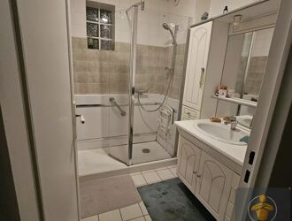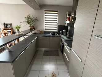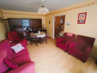 Une pièce de vie spacieuse avec cuisine semi-ouverte aménagée, offrant un espace convivial, deux chambres confortables, une salle de bains, une salle d’eau supplémentaire, un WC indépendant.
