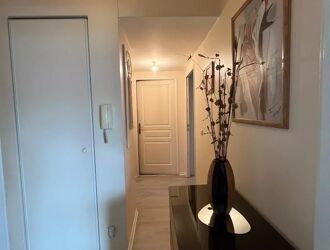 Hall d'entrée avec rangement et grand placard, séjour donnant sur balcon, cuisine équipée donnant également sur balcon/loggia, 2 chambres, salle de bains, wc.